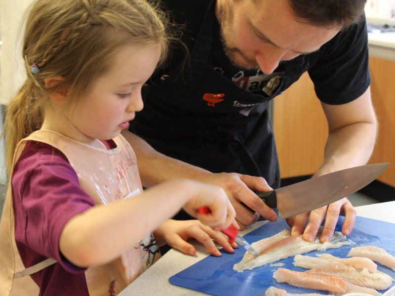 “Just a quick note to say how much my son & husband enjoyed their session this afternoon. Our son was totally engrossed in the tasting of ingredients/prep/cooking and made him really proud. I was gutted that they ate all the fishcakes – but that means that they will have to cook them again soon! They are really looking forward to their net session in a couple of weeks and I suspect may come to more after that.”